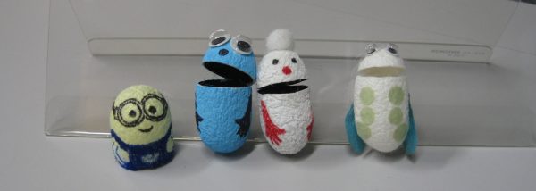 こんにちは、ジオ丸です。以前お知らせした、「冬休みわくわくワークショップ」(1月10日開催)で作成する”まゆ玉クラフト”のサンプルができました。どんなものなのかイメージし難いかな…と思いましたので、参考までにご紹介します。もちろん、一人ひとりの自由な発想で作っていただくものですので、当日はもっといろいろな楽しい作品が出来上がることと思います。お時間がありましたら、どうぞご来館ください。