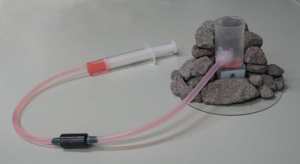 今回は、新しく「発泡による噴火実験」ができるようになりましたので、そのお知らせです。水蒸気噴火をイメージした実験になります。「水に触れることで発泡し、フィルムケースのふたを吹き飛ばす」という実験です。実際の噴火のように水蒸気ではなく、二酸化炭素の発泡ではありますが、気体になるときの大きな体積増加での爆発ですので、少しは噴火の感じが味わえるのではないかと思います。それに、けっこう吹き飛びますので、ちょっとびっくりするかも。子供も楽しめる実験だと思いますので、どうぞご活用ください。