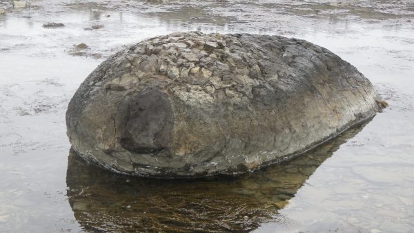 こんにちはジオ丸です。男鹿半島・大潟ジオパークは、無事に再認定となりました。おめでとう! これからまた4年間、さらに進化を続けていくことでしょう。こうご期待! さて、2月になり、鵜ノ崎海岸の小豆岩(コンクリーション)が見ごろを迎えました。機会がありましたら、ぜひ足を運んでみてください。(もちろん防寒対策と、できるだけ深さのある長靴は必要です。)観察に適した日は、2月18日(水)10:00~10:30頃、19日(木)10:30~11:00頃、3月3日(火)9:30~10:00頃、3月18日(水)9:00~9:30頃 などです。休日でないと...という方は、ちょっと朝早めですが、3月1日(日)8:00~8:30頃が良さそうです。(前後の日もある程度潮位は下がっています。潮汐表などでご確認ください。)もちろん、お天気次第なので、(低気圧が来ていると潮位は上がってしまいます)晴天(高気圧)を祈りましょう。条件が整えば、写真のように河童の頭のようなおもしろい小豆岩や、クジラの骨の断面が良く見える小豆岩も観察できます。こちらも、こうご期待!です。