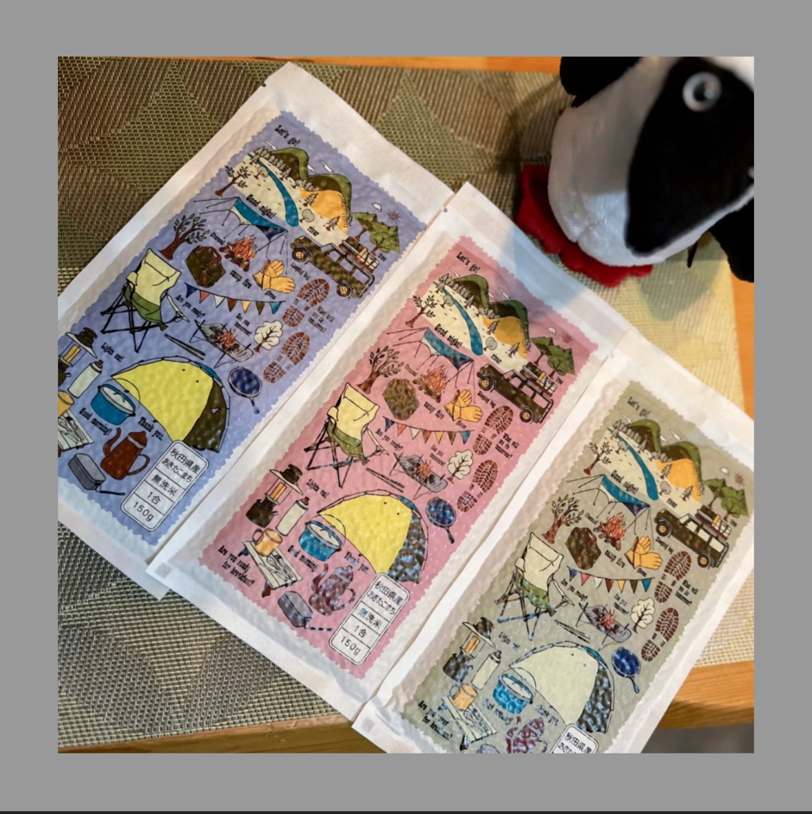 - 男鹿と大潟のかわいいイラストが目印の大潟村産のお米です。 一包150g。アウトドアでメスティンにお米をあけたらパッケージでそのまま水も量れます! キャンプに自分で炊くおいしいご飯をどうぞ!